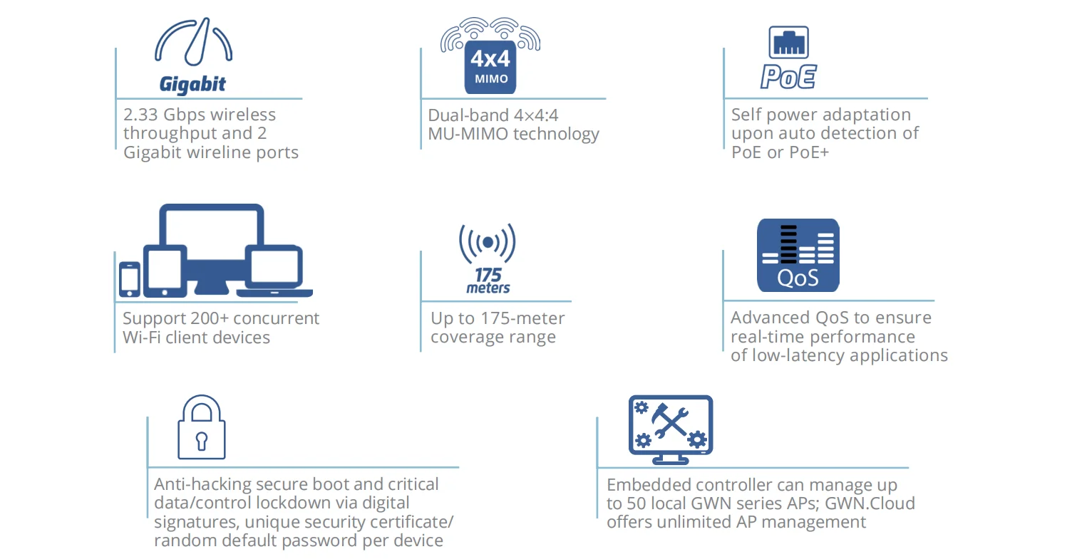 | Network Management | ≥ 50 APs: Cloud management (GWN.Cloud) |